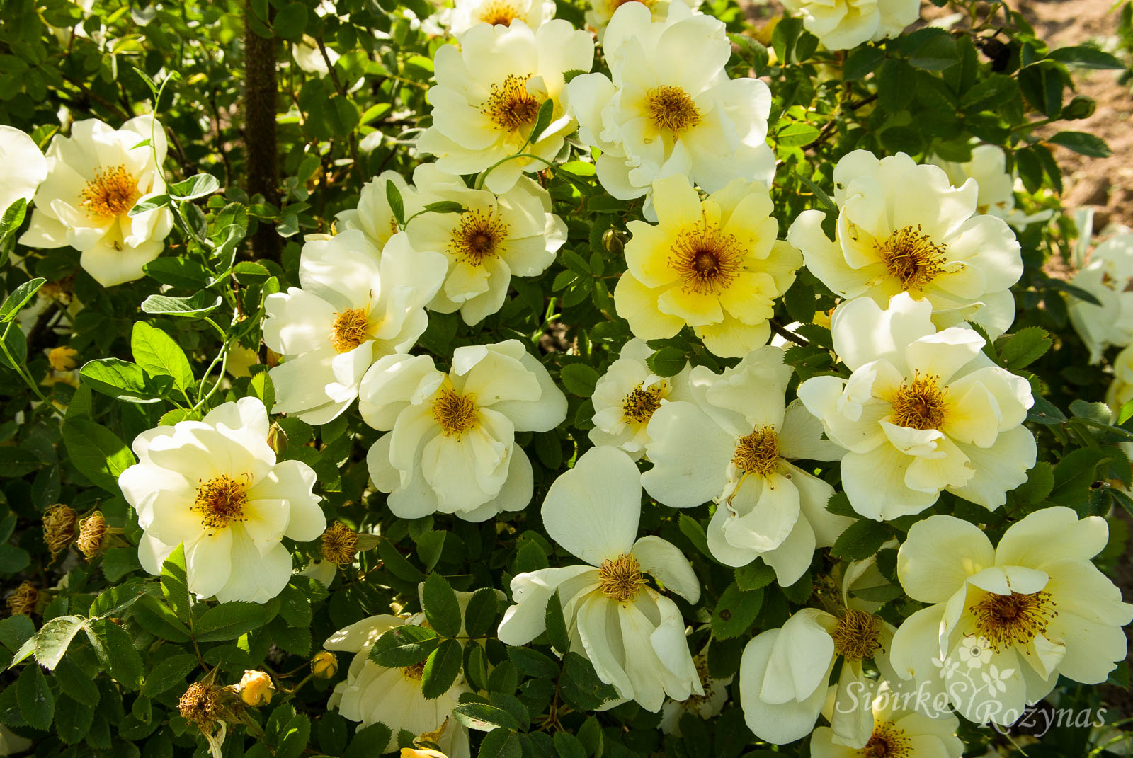 Jaunų krūmų stiebai iš pradžių auga pažeme. Žiedai stambūs. Labai įspūdingas pirmasis žydėjimas. Vėliau jau ne taip gausiai skleidžiasi pavieniai žiedai. Genint galima auginti ir kaip vidutinio aukščio krūmą.